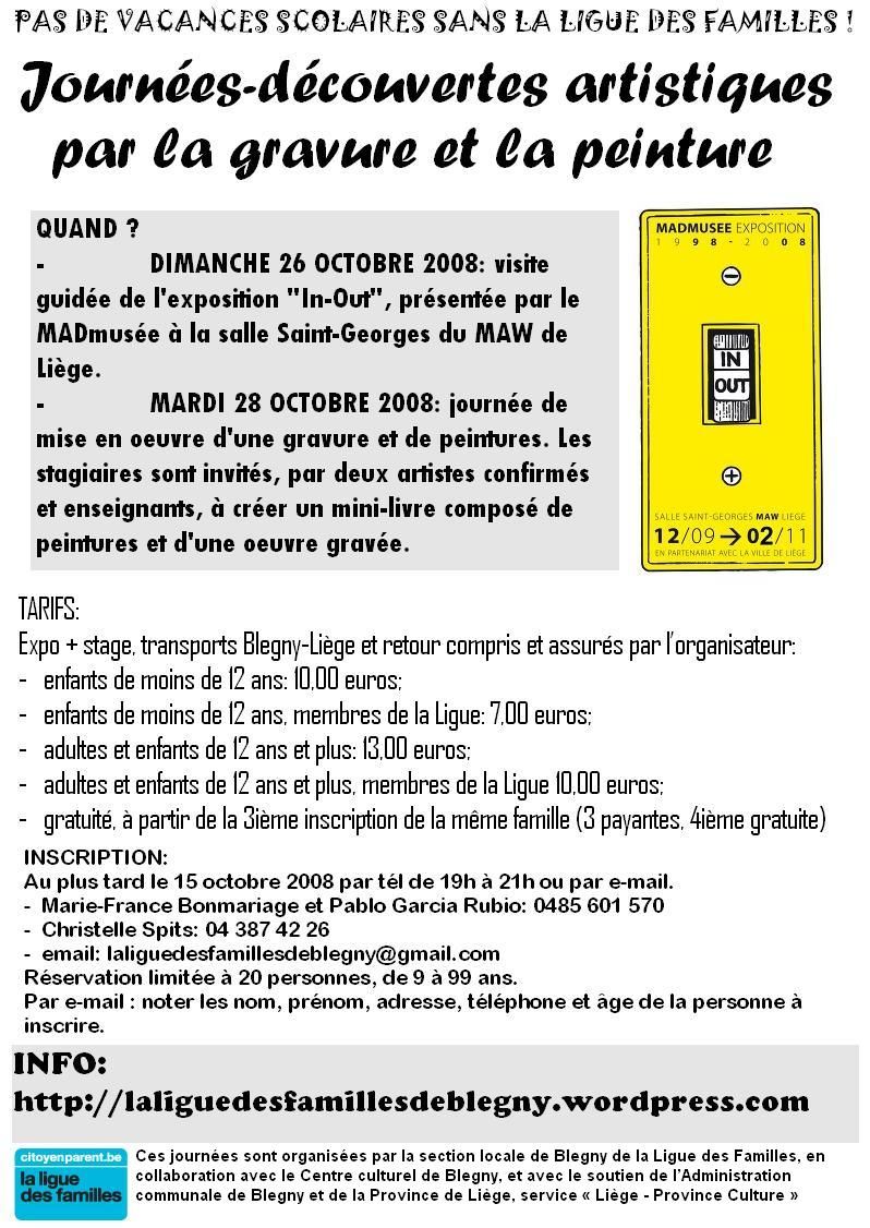 journée de mise en ouvre d'une gravure et de peintures dans un lieu encore à déterminer à BLEGNY (très probablement le réfectoire de l'école communale).