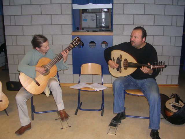 Programme : Musique à l'Ecole avec le duo «Al'Chimie » (guitare-oud) - animation interactive pour les élèves des 3 ème et 4 ème primaires - dossier pédagogique réalisé par Ferdi Grigoletto (Centre Culturel de Blegny).